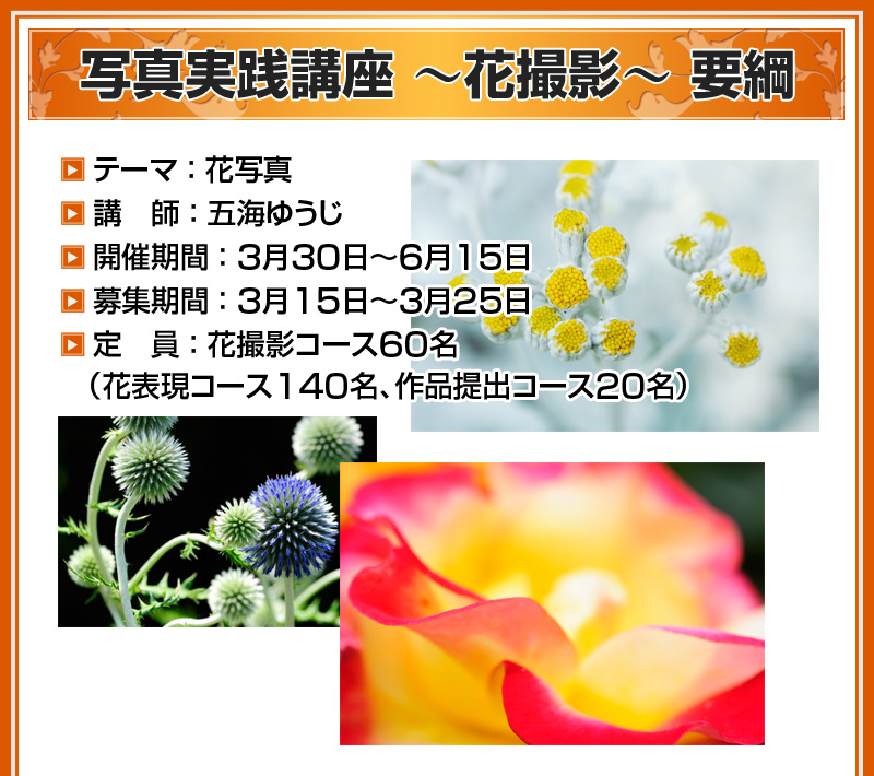 一流のプロカメラマンが教える「写真実践講座 ~花撮影~」は、