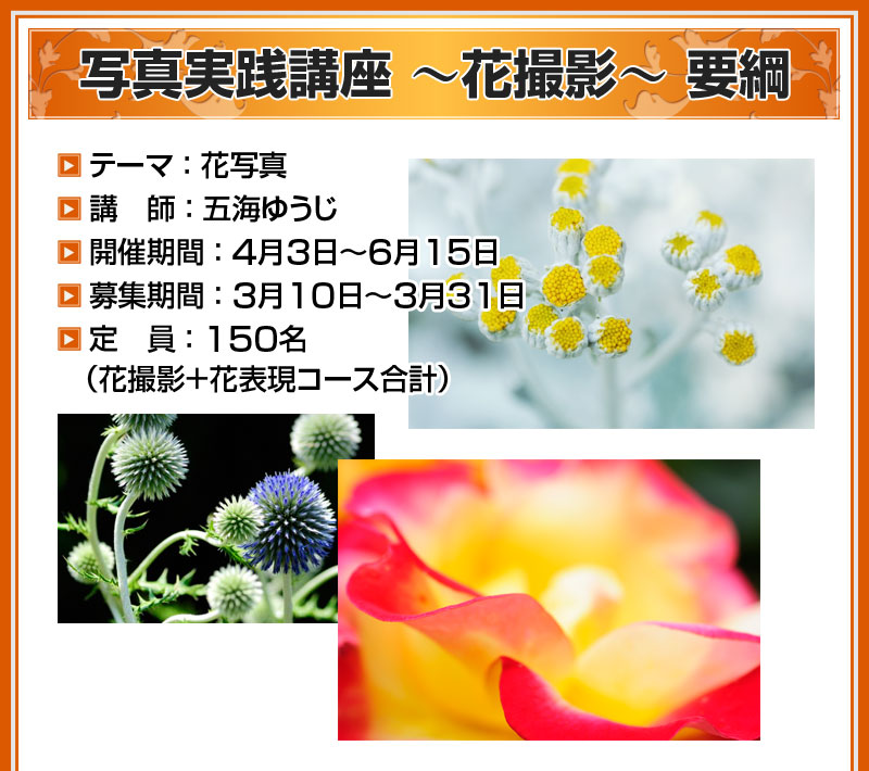 一流のプロカメラマンが教える「写真実践講座 ~花撮影~」は、